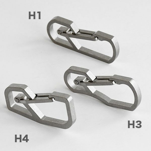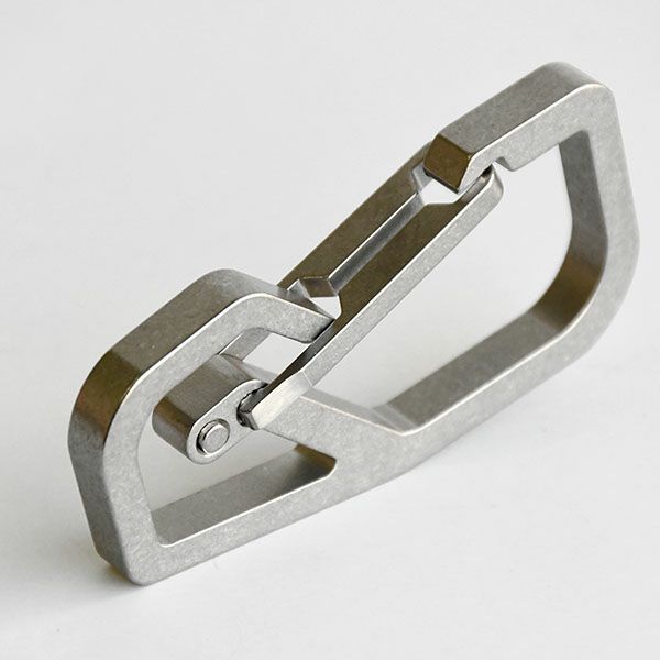 通常のスチールや、他のチタングレードよりも「弾力性」があるので、カラビナのバネ機能に最適。開閉アクションはとてもなめらか。指を挟まないようにご注意ください。 |