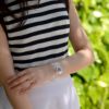 ●女性スタッフb(手首サイズ約 14.5cm):腕を動かすとバングルも動きますが、アクセサリー的に使えるのでサイズはピッタリと思います!