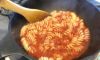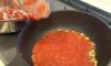 3、ニンニクから香りが出てきたら、トマトソースを全て入れ、茹で上がったパスタの茹で汁をおたま一杯分フライパンに入れ、煮立たせる。