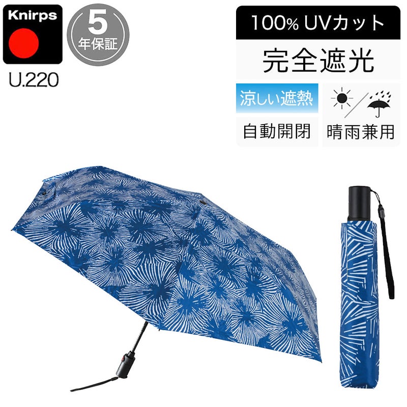 【直径:約97cm】【自動開閉】 クニルプス 【傘カバープレゼント】 折りたたみ傘 Knirps U220 KNUL220-88872 Doodle Blue