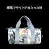 日中のおしゃれアイテムとしてだけでなく、バッグに使用されている反射素材(ポリエステル・ガラスビーズコーティング)が夜間の安全性も確保します。