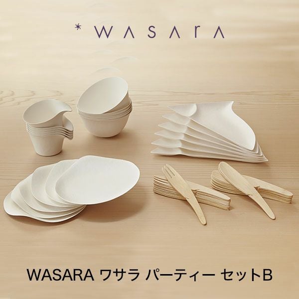 WASARA ワサラ パーティー セット 【丸皿(中) ボウル コーヒーカップ wasara 竹製フォーク 竹製スプーン】 紙皿 紙の器