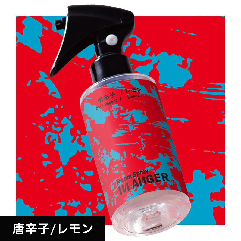 ルームスプレー IN ANGER(インアンガー)は、こもった空間の香りをリフレッシュするだけでなく、スプレーを強く握り噴霧するという行為そのものに意味を持たせることをコンセプトに開発されました。