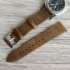 本革をヤスリで凹凸をつけ、オイルを染み込ませやすくなる製法で、使い込むと色艶が増します。ワイルドな印象が濃いベルト、無骨なフェイスにとても合いながら高級感も失いません。