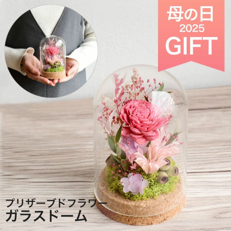 プリザーブドフラワーとドライフラワーのガラスドーム