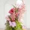 プリザーブドフラワーとドライフラワーを使用しており、優しいピンクを基調とした繊細で可愛らしい色合いのデザインです。