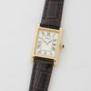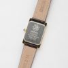 ゴールドカラーとダークブラウンのレザーベルトはクールな印象ながらも親しみやすい温かなイメージを持ちます。