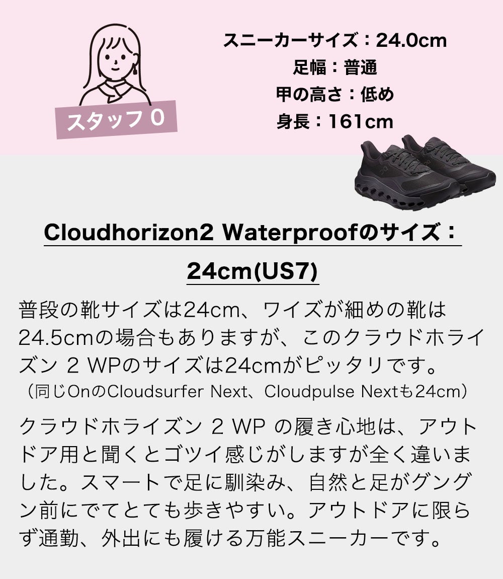 他の画像を見る On 防水ハイキングシューズ レディース クラウドホライズン2 WP オン Cloudhorizon2 WP 防水 クッション グリップ アウトドア スニーカー 価格 ¥ 25,300 税込 カートに入れる お気に入りに登録する